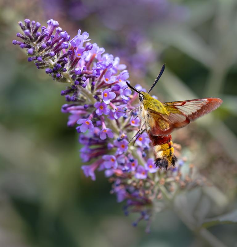 Broad-boardered Bee Hawk-moth feeding